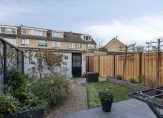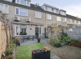 De achtertuin is gelegen op het noord/westen en onderhoudsvriendelijk ingericht met een terras, kunstgras, borders met vaste beplanting, zonneluifel, buitenkraantje en achterom. Een schutting is recent vernieuwd. Vrijstaande stenen berging met elektra achterin de tuin zorgt voor een praktische extra ruimte.