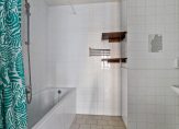 Ruime slaapkamer met laminaat vloer, stucwerk wandafwerking en badkamer ensuite. De slaapkamer is rustig gelegen aan de achterzijde waar ook geen galerij langs loopt. Volledig betegelde badkamer met ligbad met douchegelegenheid, wastafel en afzuiging.