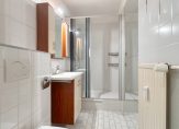 Ruime slaapkamer met laminaat vloer, stucwerk wandafwerking en deur naar het balkon. Het balkon is gunstig gelegen op het zuidoosten en biedt een weids en vrij uitzicht. Volledig betegelde badkamer met hangtoilet, wastafel met meubel, douche en afzuiging.