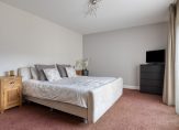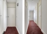 Via de woonkeuken betreed u de hal naar de slaapvertrekken. Bergkast met locatie CV ketel (Remeha, mei 2024). Slaapkamer 1 aan de achterzijde met tapijt vloer, stucwerk wandafwerking en schuifpui naar de patio. Ook hier is de schuifpui voorzien van een plisse hordeur. Slaapkamer 2 en 3 zijn beide voorzien van een tapijt vloer en stucwerk wandafwerking. Volledig betegelde badkamer met ligbad, douche, brede wastafel met meubel, hangcloset, afzuiging, decorradiator en draai-kiepraam.