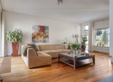 Overdekte entree. Hal met houten vloer, stucwerk wandafwerking en garderobe. Volledig betegeld toilet met hangcloset, fonteintje met meubel en afzuiging. Ruime en lichte woonkamer met houten vloer, stucwerk wandafwerking, sfeervolle gashaard en een schuifpui naar de patio. De schuifpui is voorzien van een plissé hordeur. De woonkamer biedt een half open verbinding met de woonkeuken. De woonkeuken is deels voorzien van een houten vloer en deels voorzien van een tegelvloer, stucwerk wandafwerking, airconditioning (2022) en inbouwspots. Vele raampartijen brengen hier veel daglicht binnen. In 2021 is de keukenopstelling vernieuwd én verruimd. De luxe keukenopstelling (Van Diessen keukens) is voorzien van veel werkblad en diverse inbouwapparatuur: Bora inductie kookplaat met geïntegreerde afzuiging, 2 ovens, ruime koelkast, ruime diepvries, vaatwasser, Quooker, elektrische boiler, 2 spoelbakken en verschillende opbergkasten en lades. Deur naar de bijkeuken. De bijkeuken is voorzien van een tegelvloer, stucwerk wandafwerking, inbouwspots, elektrische verwarming en een op maat gemaakte wandkast met daarin (op hoogte!) de aansluitingen voor de wasapparatuur. Deur naar de berging/garage.