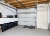 Inpandige garage/berging met tegelvloer en een elektrische roldeur. De omvormer van de zonnepanelen en de moderne meterkast met voldoende groepen bevinden zich in de garage.
