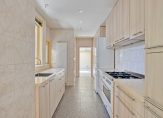 – De fraaie keuken (oppervlakte: circa 17 m²) biedt tevens toegang tot het toilet, de kelder en de tuin. De kelder is achter een fraaie kasten wand gemonteerd. De keuken is voorzien van een tegelvloer met vloerverwarming, betegelde wandafwerking en aan beide zijdes een rechte keuken opstelling. De keukenopstelling is voorzien van een composieten werkblad, een kooktoestel/oven, afzuigkap, koel-/vriescombinatie, vaatwasser en veel opberglades en kastjes. Ook is hier een kastenwand met opstelling Remeha HR-combi-ketel (bouwjaar: 2017).