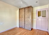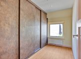 – Slaapkamer aan de voorzijde (oppervlakte: circa 8 m²) met parket vloer, stucwerk wandafwerking, inbouwspots en een inbouwkast.