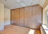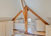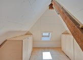 Ruime en lichte ruimte met Velux dakraam aan de voor- en achterzijde. Op deze verdieping zijn, rollende maatkasten gemaakt onder het schuine gedeelte.