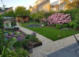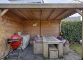 De voortuin is voorzien van een border met vaste beplanting en een ruime oprit. De oprit biedt toegang tot de garage en de voordeur. Ruim 32 meter diepe achtertuin gelegen op het noordoosten, door de grootte van de tuin is er altijd wel een plekje in en uit de zon te vinden. De achtertuin is voorzien van verschillende terrassen, gazon, borders met vaste beplanting, er is een buitenkraantje, verschillende elektrapunten en een diversiteit van vaste beplanting, bomen en struikgewas. De achterom bevindt zich achterin de tuin. Houten berging achter in de tuin met overdekt terras. De berging en de overkapping zijn voorzien van elektra.