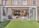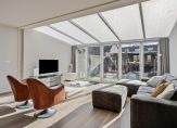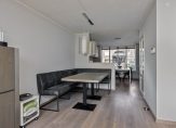 Ruime woonkamer met houten vloer, stucwerk wandafwerking en een prachtige uitgebouwde serre aan de achterzijde. De serre is voorzien van inbouwspots en een schuif/klapwand welke geheel open kan! Het dak van de serre is in 2020 vernieuwd en voorzien van een screen. De begane grond is voorzien van flinke raampartijen wat veel natuurlijk daglicht binnen brengt.