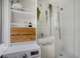 Volledig betegelde badkamer met inloopdouche en wastafel met meubel. De aansluiting voor de wasmachine bevindt zich in de badkamer. Ook de CV ketel (Remeha, 2020) bevindt zich in de badkamer, deze is fraai weggewerkt in een inbouwkast. Slaapkamer 1 voorzien van laminaatvloer, stucwerk wandafwerking en deur naar balkon aan de achterzijde. Slaapkamer 2 voorzien van een laminaatvloer.