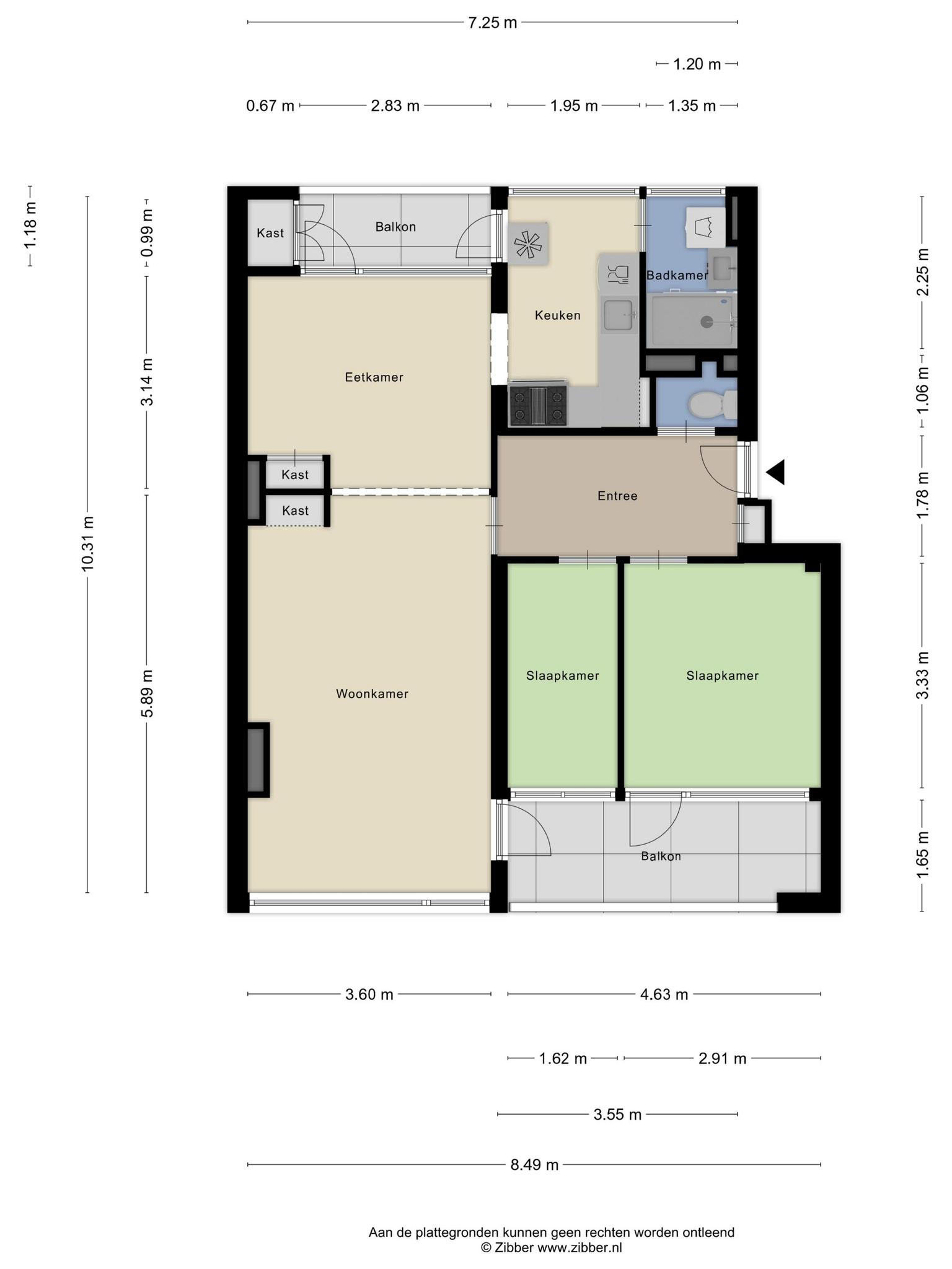– Beide balkons bieden uitzicht op een groenvoorziening.