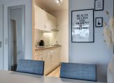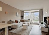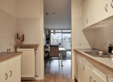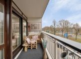 De lichte woonkamer heeft een laminaatvloer, stucwerk wanden en een grote kunststof schuifpui (2025) met Triple glas, die uitkomt op het ruime balkon, waar u kunt genieten van een prachtig, vrij uitzicht. De keuken is voorzien van een laminaat vloer, deels betegelde wandafwerking, een rechte opstelling en een klein (werk)blok aan de overzijde. De keukenopstelling (2004) is voorzien van een elektrische kookplaat en een afzuigkap, verder zijn er nog verschillende opberglades en kastjes. De flinke slaapkamer heeft eveneens een laminaatvloer, stucwerk wanden en biedt toegang tot zowel het balkon als de badkamer.
