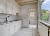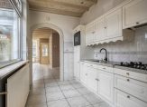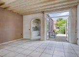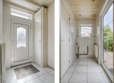 Dichte keuken met tegelvloer, inbouwspots, deels betegelde wandafwerking en deur naar de bijkeuken. Rechte keuken opstelling voorzien van een gaskookplaat, afzuigkap, koelkast, combi oven/magnetron en verschillende opbergkastjes en lades. Praktische bijkeuken, deze is volledig betegeld en voorzien van inbouwspots, een deur naar de achtertuin en de aansluitingen voor de wasapparatuur bevinden zich hier. Volledig betegeld toilet met hangcloset en fonteintje.