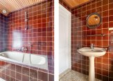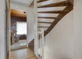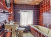 Overloop met laminaat vloer en stucwerk wandafwerking. Slaapkamer 1 aan de achterzijde met laminaat vloer. Oorspronkelijk was deze slaapkamer gesplitst in 2 slaapkamers, dit is eenvoudig terug te realiseren. Slaapkamer 2 aan de voorzijde met laminaat vloer en rolluik. Volledig betegelde badkamer met ligbad met douche gelegenheid, wastafel en toilet.