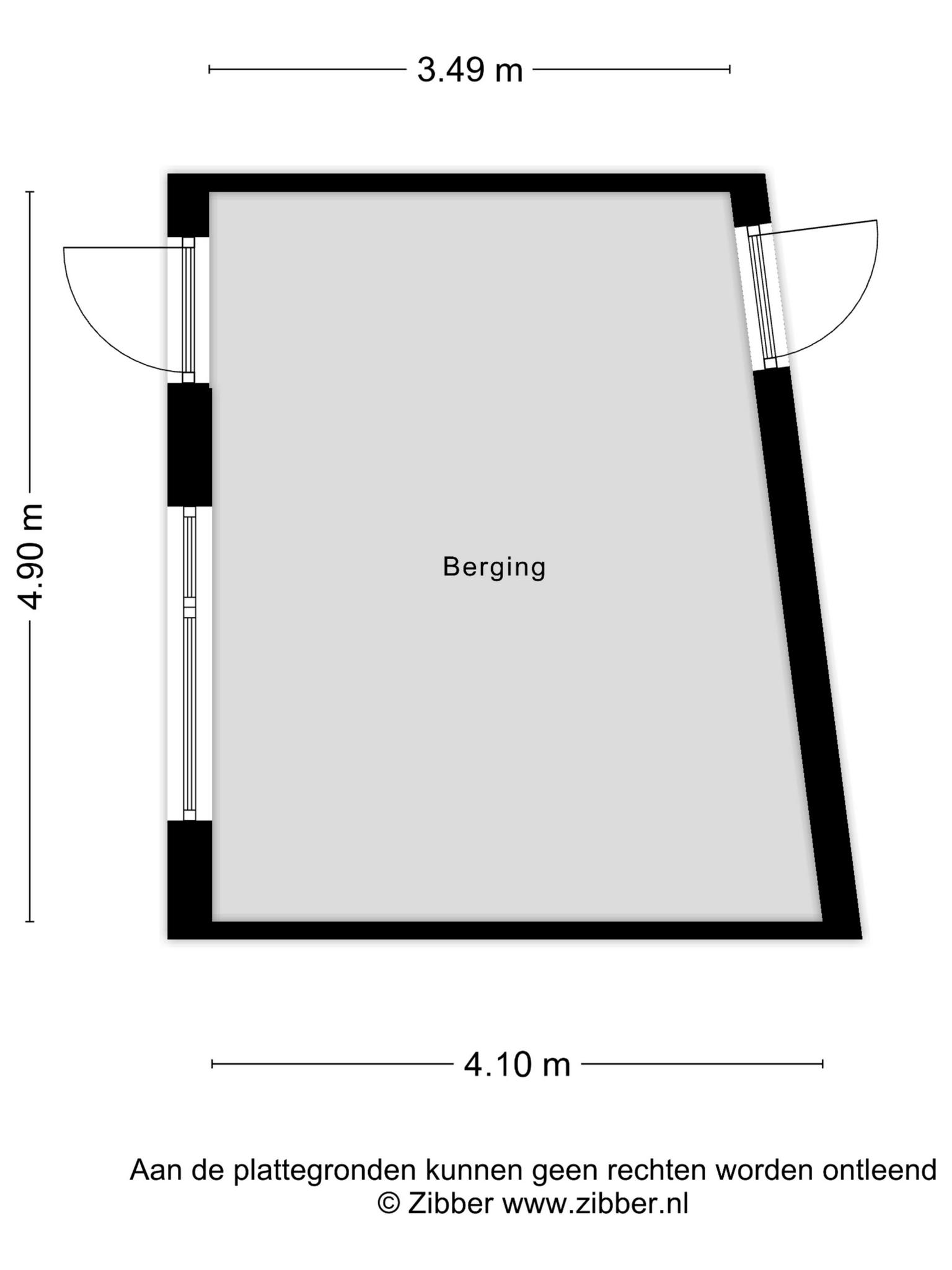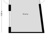 Ruime stenen berging achterin de tuin over de volledige breedte met elektra en achterom.