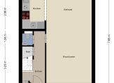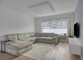 Ruime, lichte woonkamer met houten vloer, stucwerk wandafwerking, inbouwspots en schuifpui naar de achtertuin. De woonkamer is voorzien van een airco. Half open keuken aan de achterzijde met houten vloer en stucwerk wandafwerking. De L-vormige keukenopstelling is in 2018 vernieuwd en is voorzien van diverse inbouwapparatuur: vaatwasser, inductie kookplaat, afzuigkap, oven, magnetron, koelkast, diepvries en verschillende opbergkastjes en lades.