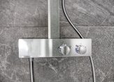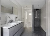 Overloop met laminaat vloer en stucwerk wandafwerking. Slaapkamer 1 aan de achterzijde met laminaat vloer, stucwerk wandafwerking, airconditioning en elektrisch rolluik. Slaapkamer 2 aan de voorzijde met laminaat vloer, stucwerk wandafwerking en elektrische rolluik. Moderne, in 2025 vernieuwde badkamer aan de achterzijde. Deze volledig betegelde badkamer is voorzien van een dubbele wastafel met meubel, een hangcloset, ruime inloopdouche, inbouwspots, afzuiging en een deur naar het balkon aan de achterzijde. 2e Badkamer aan de voorzijde met inloopdouche, wastafel met meubel en mechanische ventilatie.
