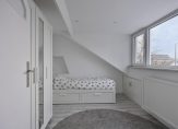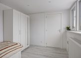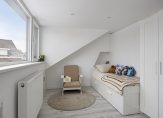 Overloop met laminaat vloer, stucwerk wandafwerking en dakkapel (2025) aan de achterzijde met rolluik. Hier bevinden zich de aansluitingen voor de wasapparatuur. Flinke inbouwkast met daarin de CV ketel (Intergas, 2018) en de omvormer van de zonnepanelen (13 zonnepanelen, 2020). Slaapkamer 3 aan de voorzijde met laminaat vloer, stucwerk wandafwerking en dakkapel. Slaapkamer 4 aan de voorzijde met laminaat vloer, stucwerk wandafwerking en rolluik.