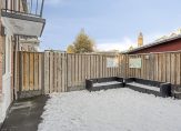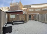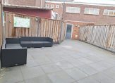Onderhoudsvriendelijke achtertuin, gelegen op het noorden met terras, buitenkraantje en een achterom. De achterom bevindt zich aan de zijkant van de tuin. Stenen berging achterin de tuin met elektra.