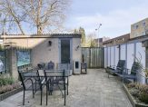 De voortuin is voorzien van bestrating met sierhek op de erfafscheiding. De achtertuin is voorzien van een flinke veranda met elektra. De veranda is middels glazen schuifdeuren af te sluiten. Verder is de achtertuin voorzien van bestrating en borders met vaste beplanting en er is een vrije achterom. Stenen berging achterin de tuin met elektra. men kan aan de achterzijde ook met de auto komen.