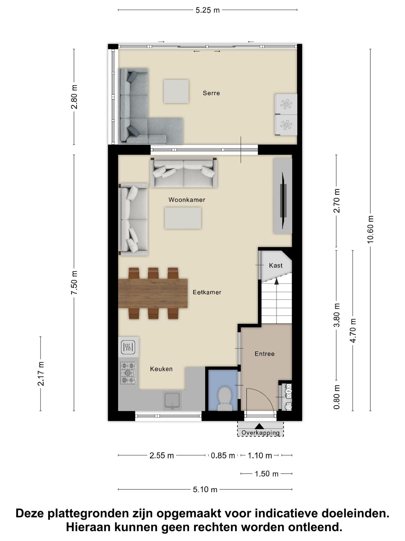 Overdekte entree. Hal met tegelvloer en stucwerk wandafwerking. Moderne meterkast met voldoende groepen. Deels betegeld toilet met afzuiging. Woonkamer met tegelvloer met vloerverwarming, stucwerk wandafwerking en deur naar de achtertuin. Praktische provisie/trap kast met daarin de unit van de vloerverwarming. In 2024 is er een airconditioning geplaatst in de woonkamer.