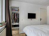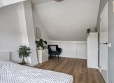 Recentelijk vernieuwde 2e verdieping. Voorzolder/ overloop met laminaat vloer. Hier bevinden zich de aansluitingen voor de wasapparatuur en de locatie van de airconditioning (2024). Ruime 3e slaapkamer met flink dakkapel aan de achterzijde (2023) en bergruimte (achter knieschot). Het dakkapel is voorzien van een kunststof kozijnen en inbouwspots.