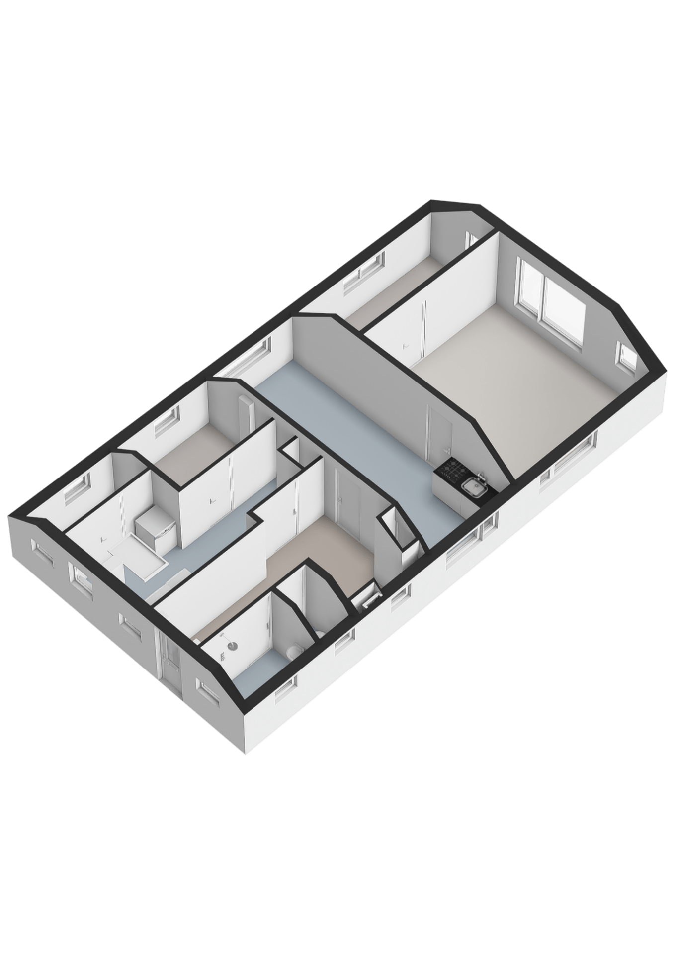 De woning (ca. 90 m²) is prima onderhouden, maar eenvoudig en gedateerd uitgevoerd, zonder isolatie. Verwarming en warm water worden verzorgd door gaskachels en een geiser. Het huis is oorspronkelijk gebouwd in 1920 en heeft in 1976 een nieuwe kap gekregen. Verder is de woning traditioneel gebouwd, met gevels van metselwerk en een betonnen vloer die direct op het zand is gestort. Er is geen kruipruimte aanwezig, waarmee de vloer niet geheel vlak is.