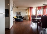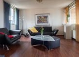 De royale, lichte living meet circa 34 m² en is voorzien van grote raampartijen. Vanuit de woonkamer heeft u, middels een openslaande deur, toegang tot de voorgelegen loggia/het balkon van circa 4,5 m².
