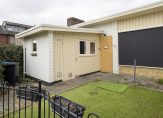 Toilet met douche. Woonkamer met rookkanaal, slaapkamer met toegang tot de patio tuin en een eigen achterom.