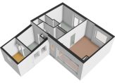 Entree/hal met meterkast en provisiekast. Toegang naar de keuken (zonder inbouwkeuken) en inpandige berging/bijkeuken.