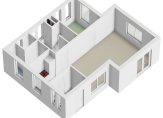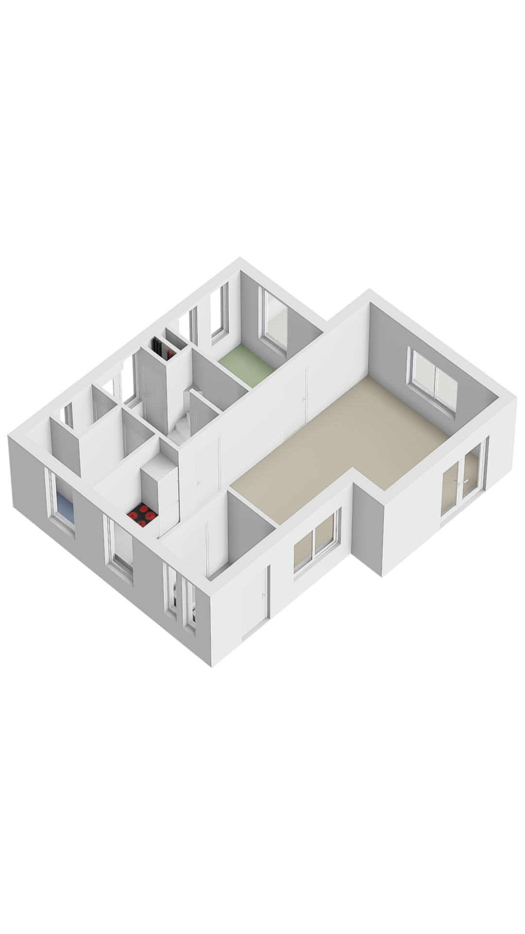 – compleet ingerichte woonkamer met meubilair en 2 openslaande tuindeuren;