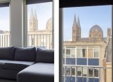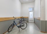 – Binnenkomst via een representatieve entree met brievenbussenblok, bellentableau en de trapopgang naar de verdiepingen. Ook is hier de doorgang naar de grote gemeenschappelijk fietsenstalling.