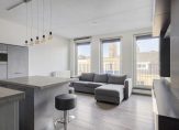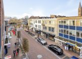 – De sfeervolle woonkamer (oppervlakte, inclusief open keuken, circa 24 m²) is voorzien van een keurige laminaatvloer en een vast wand-/tv-meubel. Dankzij de grote raampartijen geniet je hier de hele dag van veel licht en een mooi uitzicht (over de levendige Langstraat en de fraaie Brigidakerk).