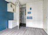 – De slaapkamer is verrassend ruim (oppervlakte: circa 15 m²) en beschikt over een nette laminaatvloer, veel vaste kastruimte en een doorgang naar de badkamer.