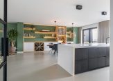 – Open keuken met een zeer luxe, op maat gemaakte inrichting, voorzien van een kook-/spoeleiland met composiet werkblad en spoelbak, inductiekookplaat (Bora) en een vaatwasser. Verder bestaat de keukeninrichting uit een wandopstelling met de navolgende apparatuur: wijnbewaarkast, koffiemachine, 2 combi-ovens, 2 koelkasten, een vriezer en hel veel kastruimte. De apparatuur is van het topmerk Miele.