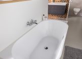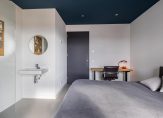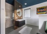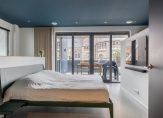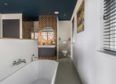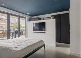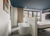 – Riante slaapkamer met eigen badkamer (totale oppervlakte: circa 16 m²); Deze kamer is voorzien van een fraaie gietvloer, strak gestukadoorde wanden, inbouwspotjes en openslaande deuren naar het zonnige dakterras.. De luxe badkamer is voorzien van een inloopdouche en een wastafel.