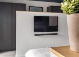 -Zeer ruime masterbedroom met badkamer en garderobe (totale oppervlakte: circa 33 m²), eveneens afgewerkt met een gietvloer, gestukadoorde wanden en inbouwspots. Een schuifpui biedt toegang tot het dakterras.. De garderobehoek met 2 inbouwkasten is vervaardigd uit hoogwaardig interieurtimmerwerk. De zeer luxe badkamer is voorzien van een duobad, een hangend toilet een fraai dubbel badmeubel en een inloopdouche met zowel een handdouche als een rainshower.