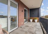 – Dakterras aan de straatzijde (oppervlakte: circa 33 m²), bereikbaar via 2 schuifpuien en met prachtig uitzicht op de Brigidakerk. Ook treft u hier een extra berging aan.