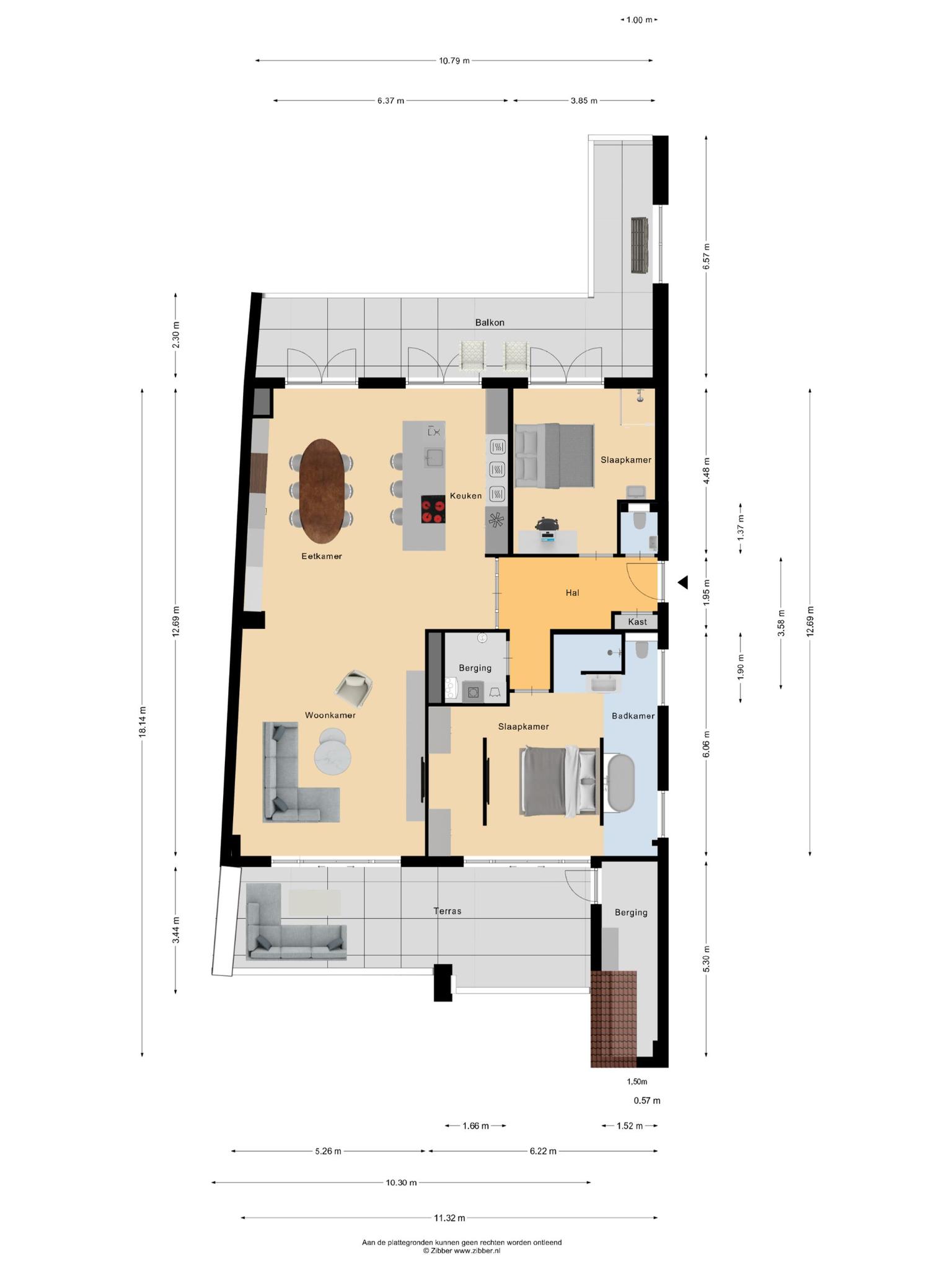 Gebouwgebonden buitenruimte (terrassen): circa 61 m².