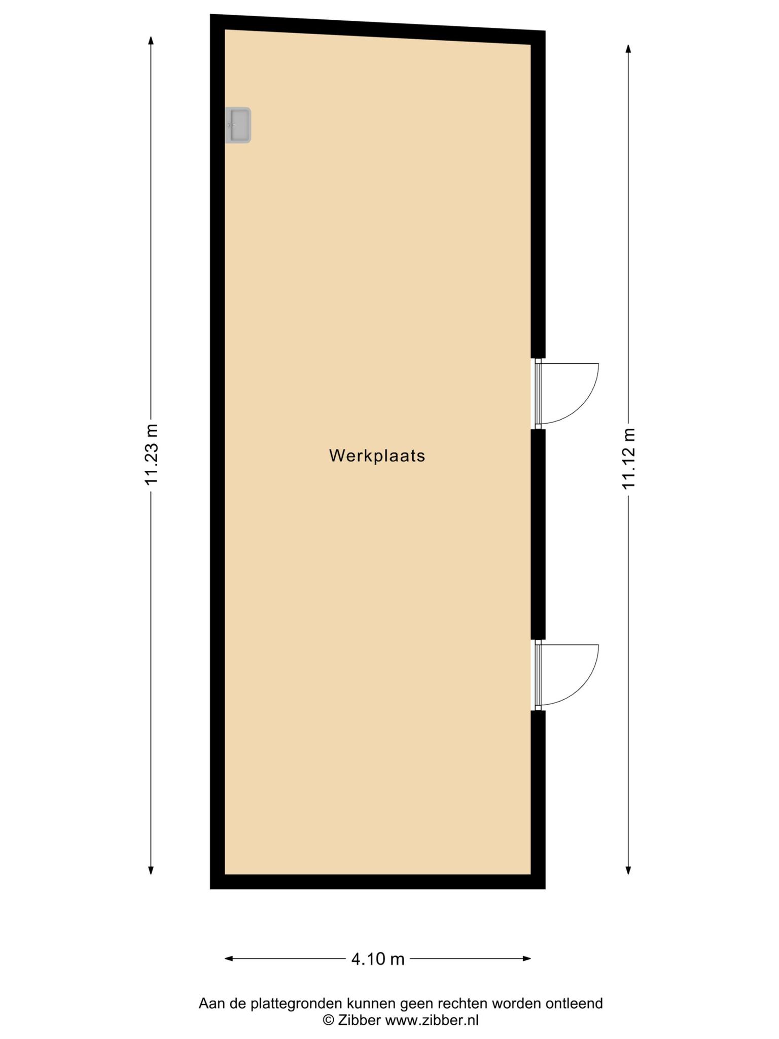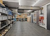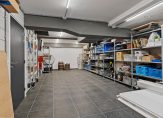 – Ruime inpandige berging/hobbyruimte (afmetingen: circa 4,10 X 11,17 m¹), voorzien van een vloeistofdichte tegelvloer, een afzuigsysteem en een uitstortgootsteen.
