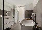 De overloop geeft u toegang tot een aparte toiletruimte, moderne badkamer, een vaste kast en twee slaapkamers. De badkamer beschikt over een inloopdouche, een wastafel met meubel en een ligbad. Tevens is op de overloop een vaste kast aanwezig.