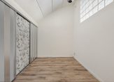 Aan de achterzijde is een slaapkamer gesitueerd, voorzien van een airco-unit, een vaste kast en directe toegang tot het balkon. Aan de voorzijde van de woning bevindt zich een extra kamer, ideaal te gebruiken als hobbyruimte of bergruimte. Deze kamer is momenteel voorzien van schuifkasten.