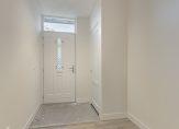Entree/ruime hal met meterkast en modern luxe toilet voorzien van hangend closet en urinoir. De sfeervolle royale L-vormige woonkamer heeft brede vensterbanken, een schuifpui naar het terras en een open keuken met complete inbouwapparatuur.