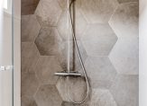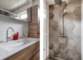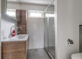 Overloop met toegang tot drie slaapkamers en een moderne badkamer met inloopdouche, wastafelmeubel en tweede toilet.