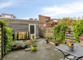 De fraai aangelegde achtertuin ligt op het noordwesten en is, ondanks die ligging, heerlijk zonnig. De tuin is voorzien van een achterom en een houten berging met elektra – ideaal voor fietsen en tuingereedschap.