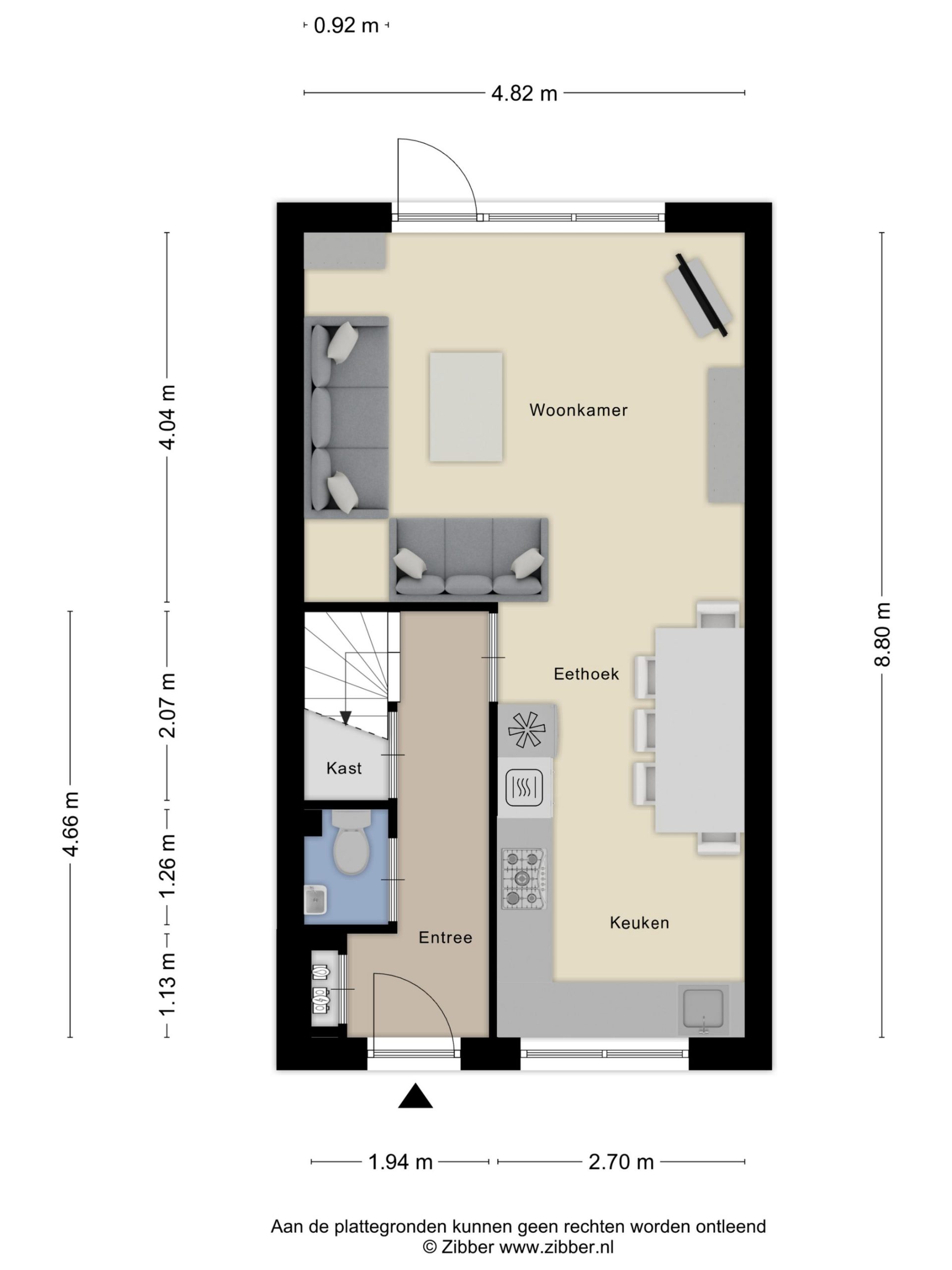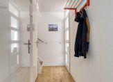 Entree met hal, toiletruimte, meterkast, trapkast en trapopgang. Vanuit de hal kom je in de lichte, tuingerichte woonkamer met eikenhouten vloer en openslaande deur naar de achtertuin.