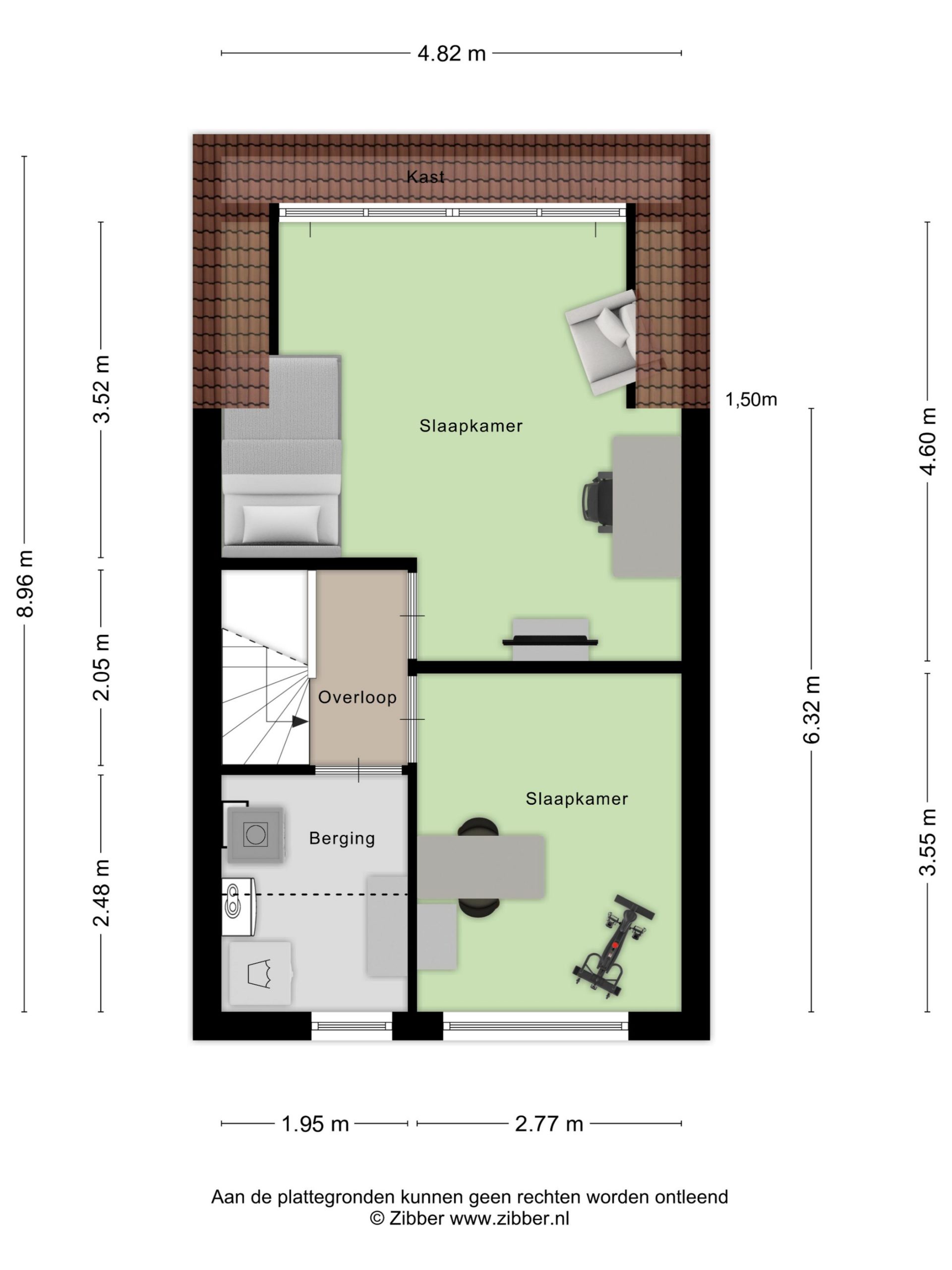 Overloop, twee slaapkamers, waarvan één met een royale dakkapel. Verder een afgesloten wasruimte met wasmachineaansluiting, cv-ketel en mechanische ventilatie.