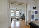 Deze voorheen in twee appartementen verhuurde woning is gemakkelijk tot één huis te maken. De badkamer op de eerste verdieping is eenvoudig te verwijderen waardoor je een werkkamer of grotere woonkamer kunt creëren (zie foto 49). De keuken op de tweede verdieping is eenvoudig te verwijderen tbv een extra slaapkamer of inloopkast (zie foto 50).