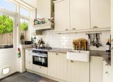 De woning beschikt over maar liefst 5 slaapkamers, een moderne keuken, een nette badkamer en een diepe, zonnige achtertuin waar je tot in de late uurtjes kunt genieten van rust en groen. De authentieke details zoals glas-in-loodramen en paneeldeuren zijn met zorg behouden, wat de woning veel sfeer geeft.