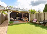 Bij binnenkomst valt meteen de prettige lichtinval op. De woonkamer met openslaande deuren naar de tuin is het hart van het huis, ideaal voor gezellige avonden of lange zomerse dagen. De moderne keuken is volledig uitgerust en biedt volop ruimte voor culinaire creativiteit. Boven vind je vijf goed bemeten slaapkamers, perfect voor een gezin, een thuiskantoor of logeerkamers.