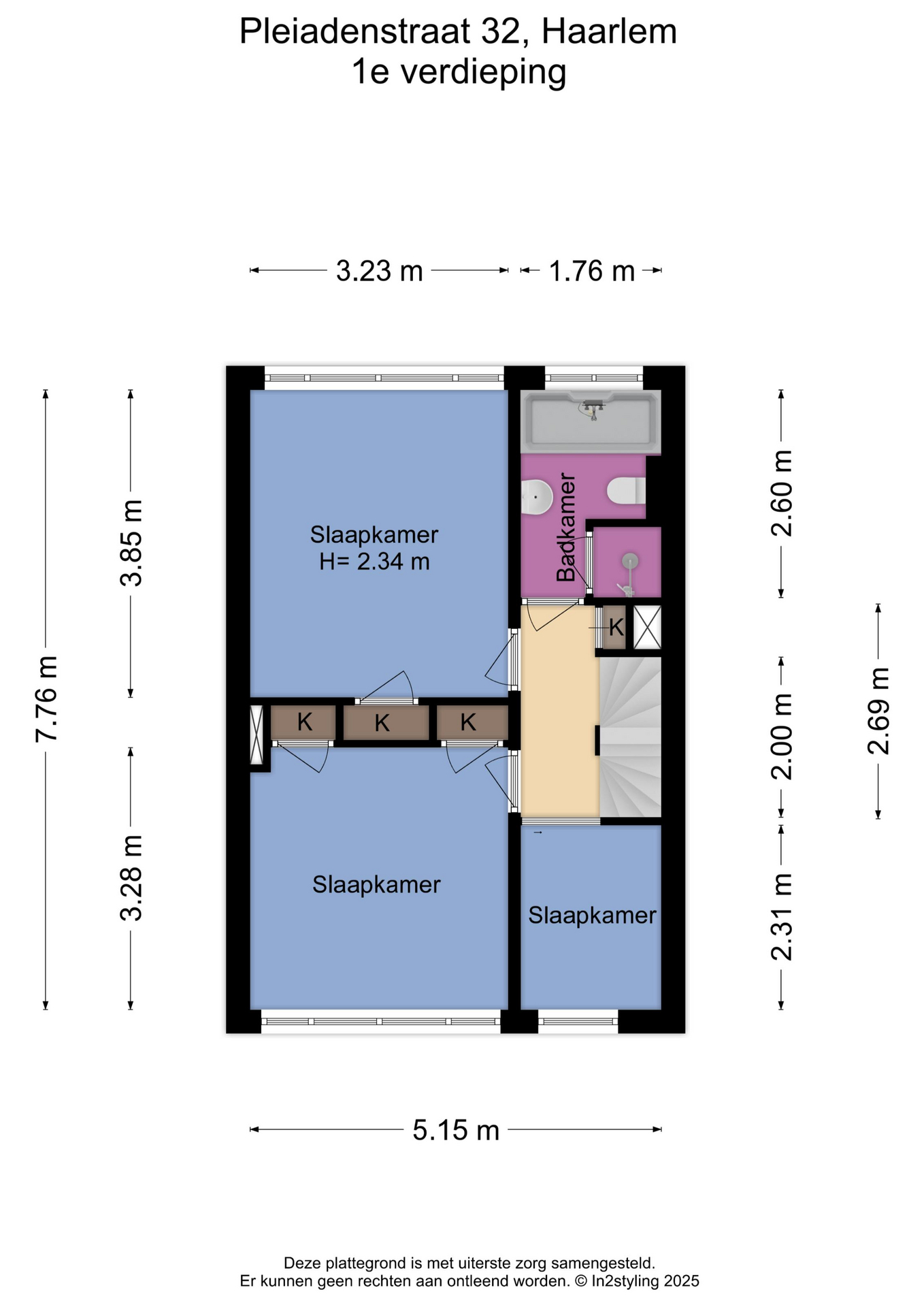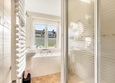 overloop, 2 slaapkamers aan de voorzijde waarvan 1 voorzien van vaste kasten, ruime slaapkamer aan de achterzijde voorzien van vaste kast, moderne badkamer met wastafel, 2e toilet, ligbad en douche.