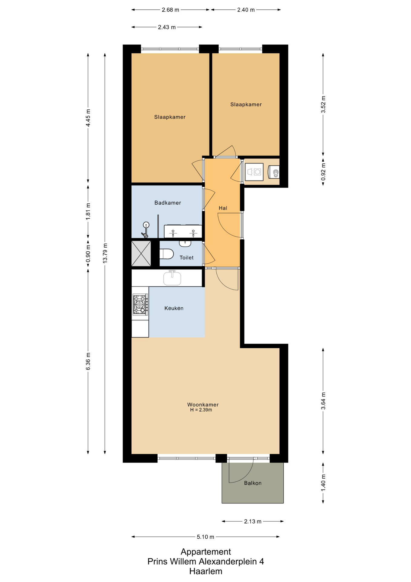entree, hal, woonkamer met toegang tot het zonnige balkon op het westen, waar je kunt genieten van het uitzicht over het plein en een doorkijkje naar de Leidsevaart. De open keuken is modern en compleet voorzien inbouwapparatuur. Ook de badkamer is modern en voorzien van inloopdouche en wastafelmeubel. Verder zijn er twee goed bemeten slaapkamers en een praktische vaste kast met aansluitingen voor de wasmachine en droger.